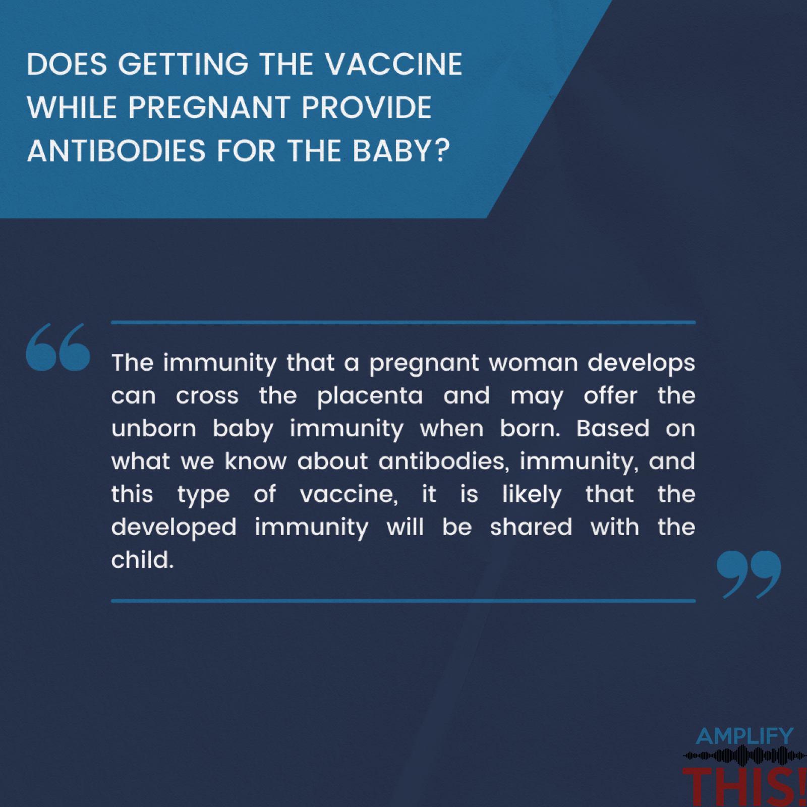 Carousal Instagram post from an interview with one of our experts who decided to vaccinate to protect against Covid-19 while pregnant. This post was made in an effort to dispel any misinformation regarding vaccines and pregnancy.